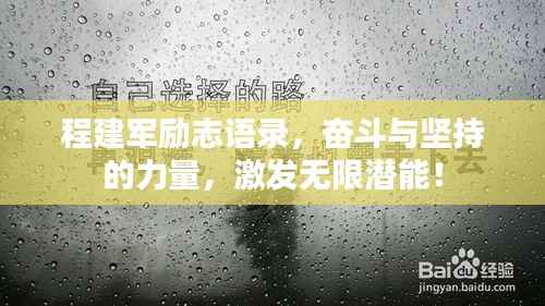 程建军,一个深受人们喜爱的励志人物,他的成功故事激励了无数人勇往直前,他的语录中充满了智慧与勇气,给人们带来了无尽的力量,本文将围绕程建军的励志语录,探讨奋斗与坚持的力量,激发人们的潜能,助力实现梦想。